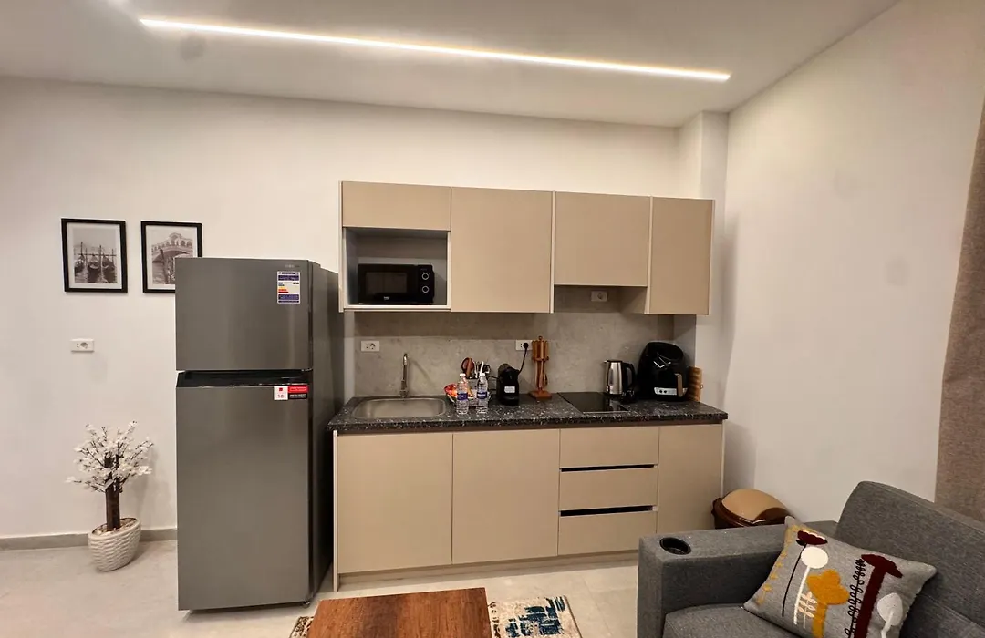 833. Modern 1Br Apartment Near Auc also features an equipped kitchen with facilities. This apartment is 70 minutes' drive from El Giza train station.